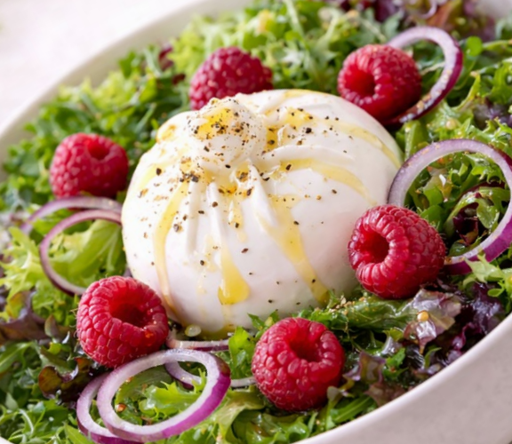 Parsemez quelques framboises ou autre fruit Merline® sur une salade verte.